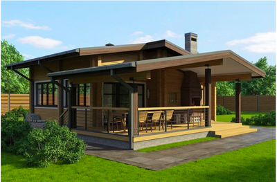 Огромное преимущество данного проекта - это просторная веранда с летней кухней, на которой так здорово готовить салаты и шашлыки для гостей и наслаждаться отдыхом на природе!