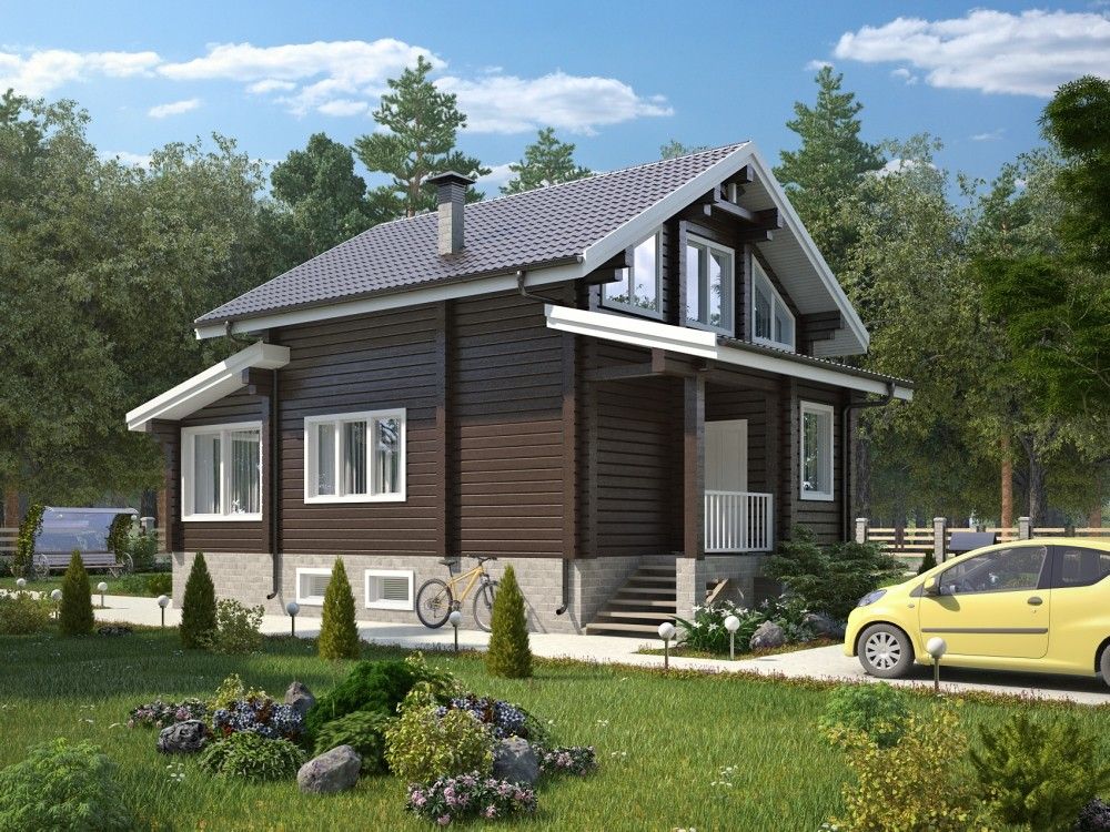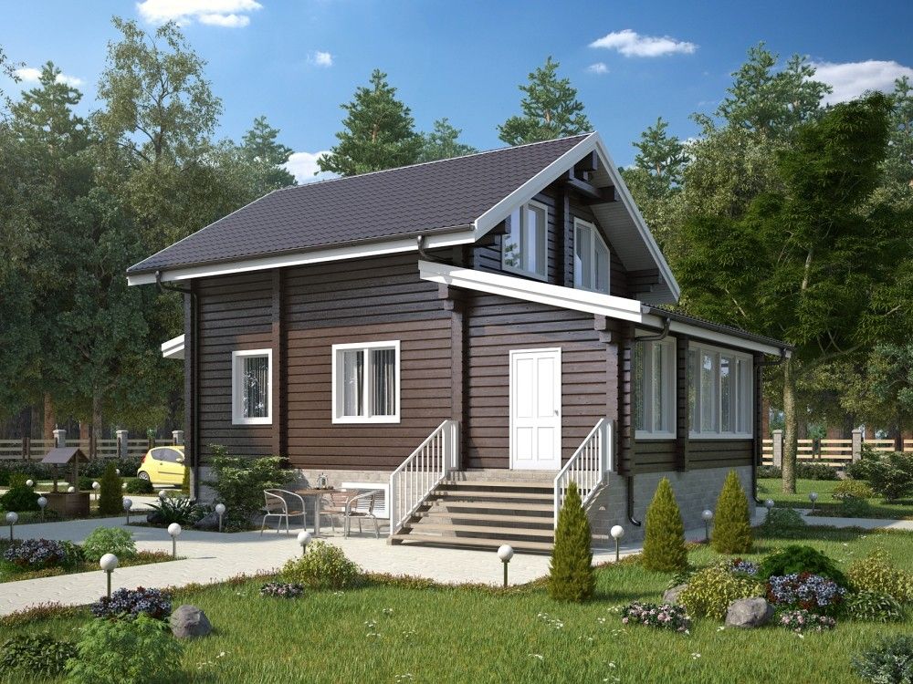 Представлен проект небольшого двух этажного дома из клееного бруса с тремя спальнями.