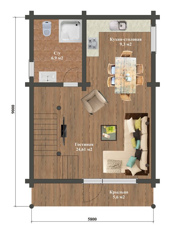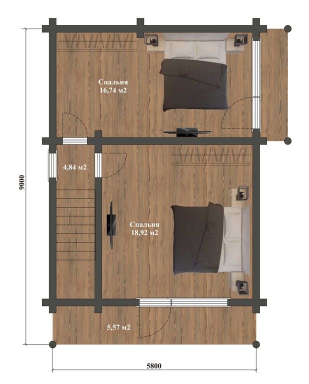 - Размеры по осям 5,8х9 метров;