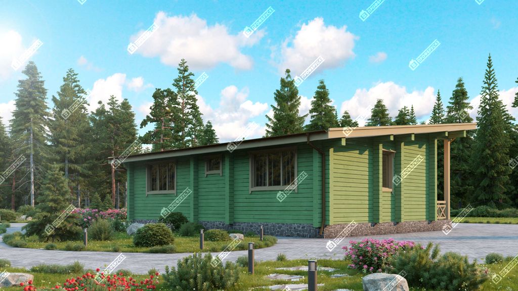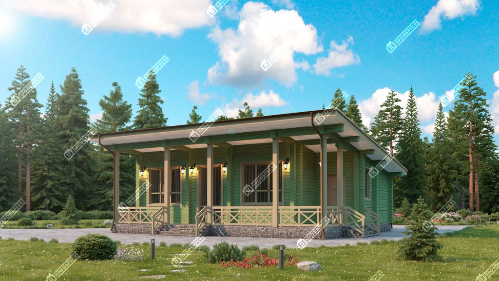 Проект одноэтажного дома из клееного бруса площадью 60 м2.