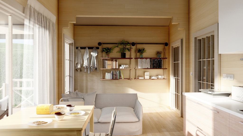 Уютный гостевой домик 6х6 с террасой для уличных посиделок и изолированной спальной комнатой.