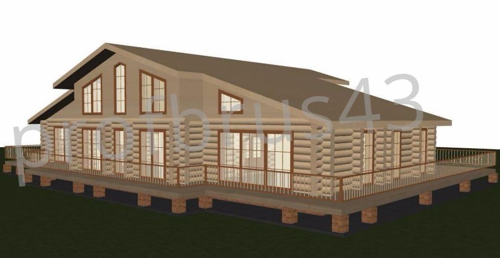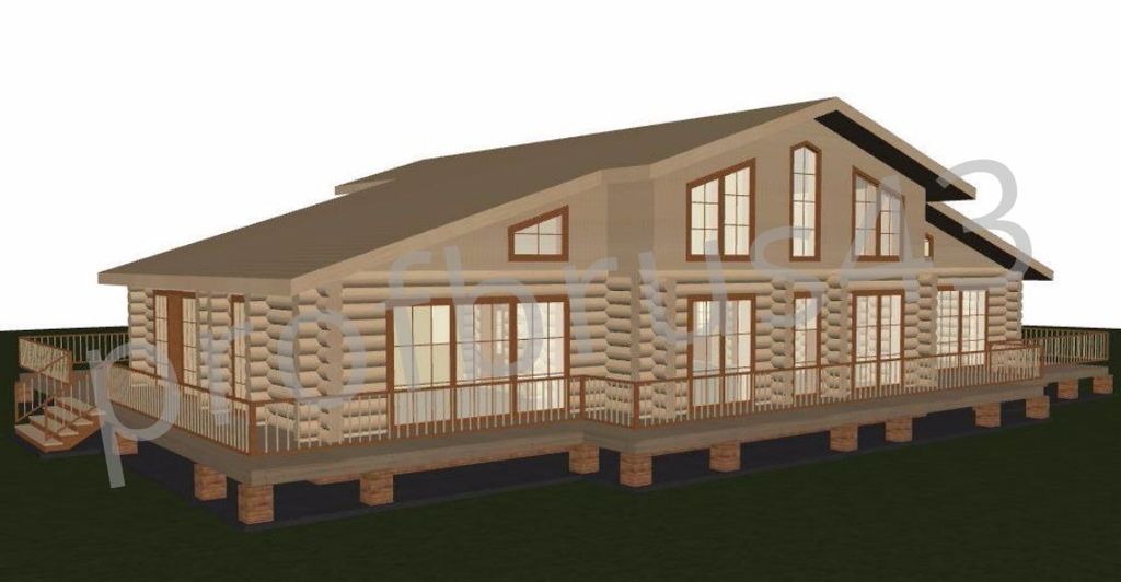 Массивные стены и огромные окна от пола до потолка, общая площадь двух этажей 564,2 м2 делают его внушительным и массивным, как будто это дом богатырей из Древней Руси.