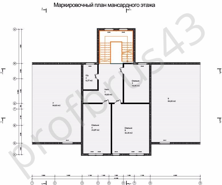 На втором (мансардном) этаже: санузел, 3 спальни и холл.