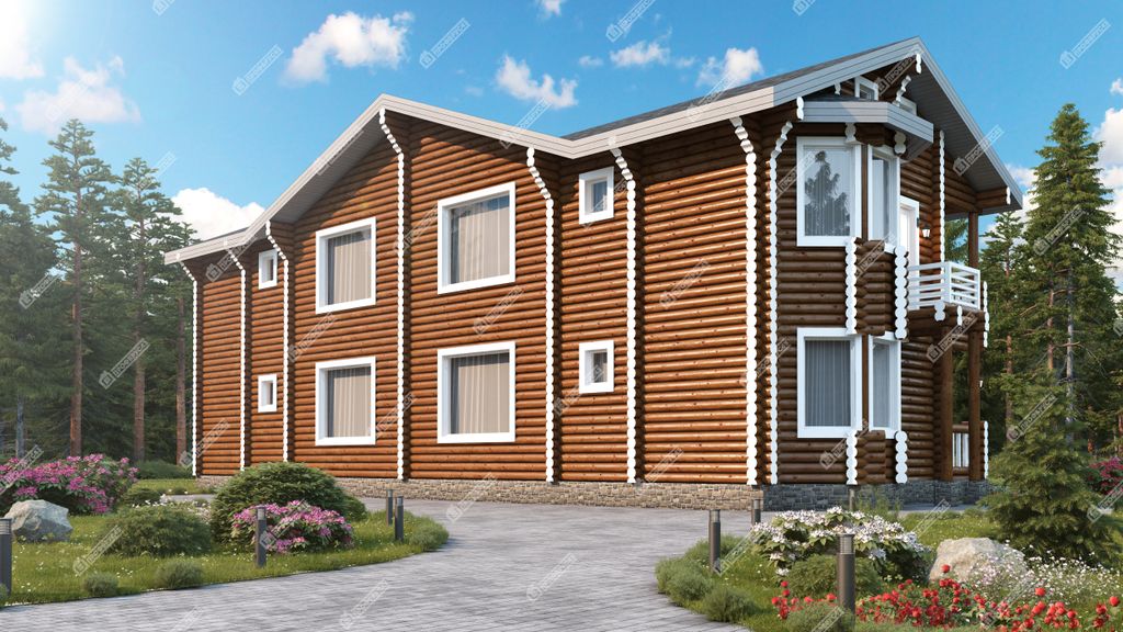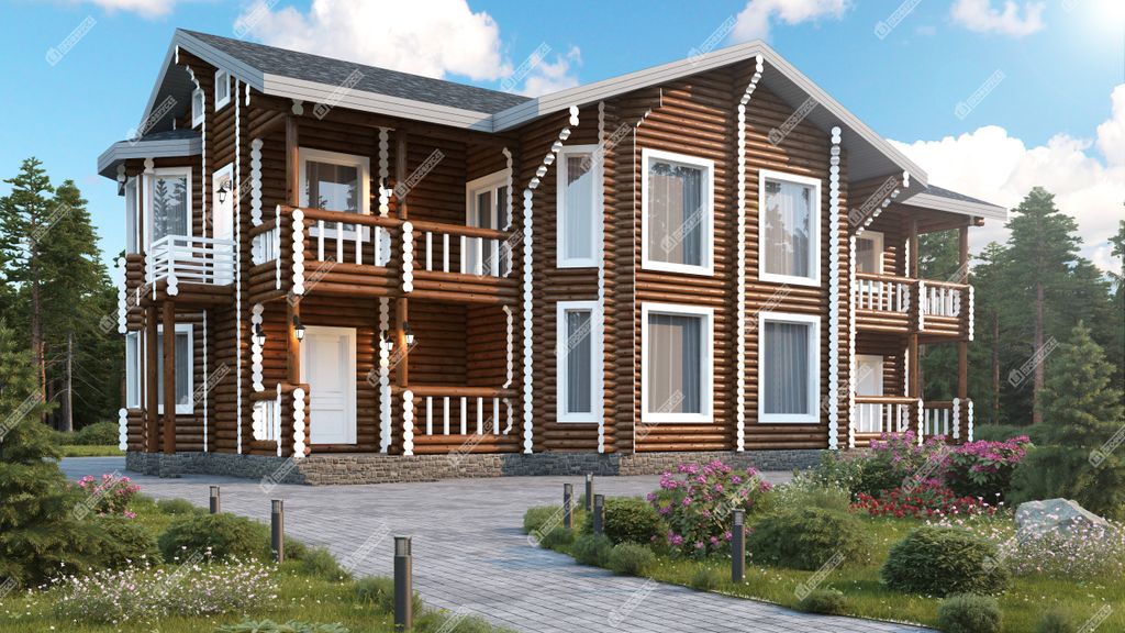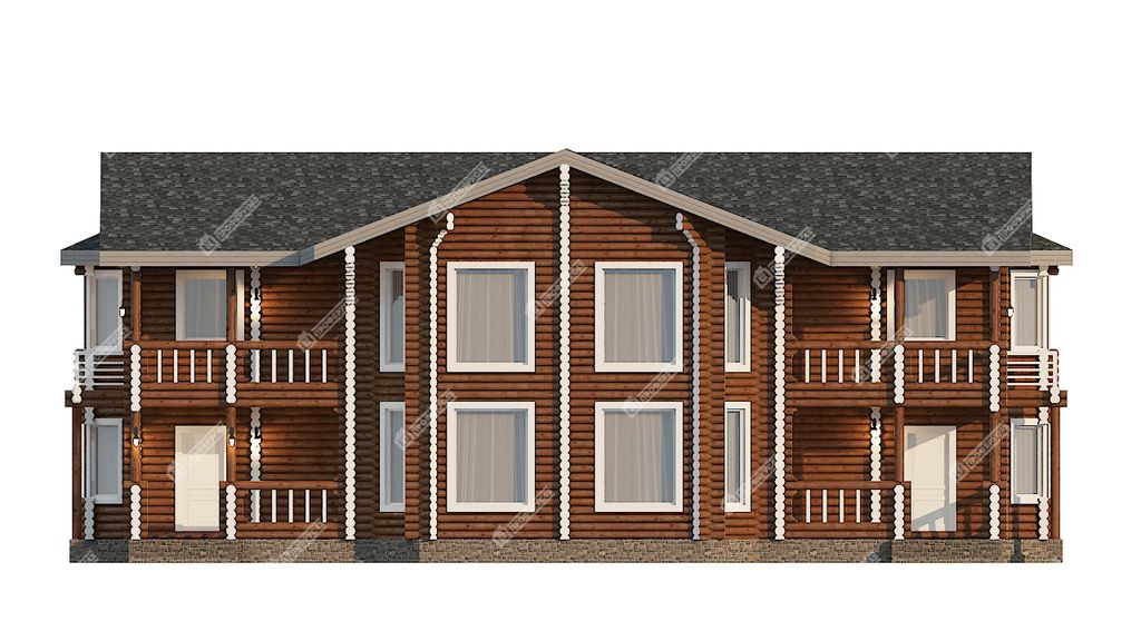 Двухэтажная гостиница из оцилиндрованного бревна на 8 номеров.