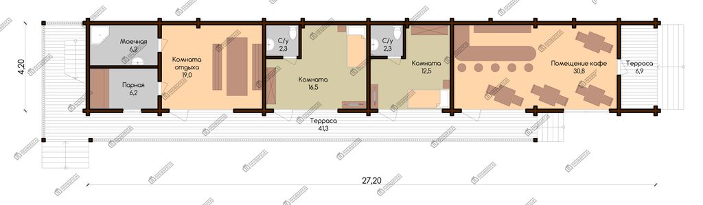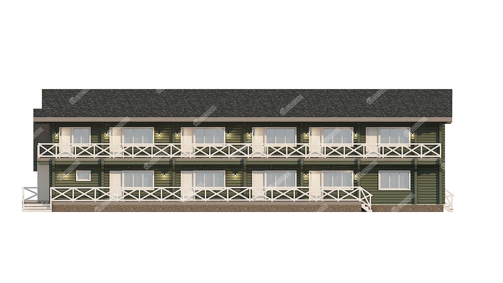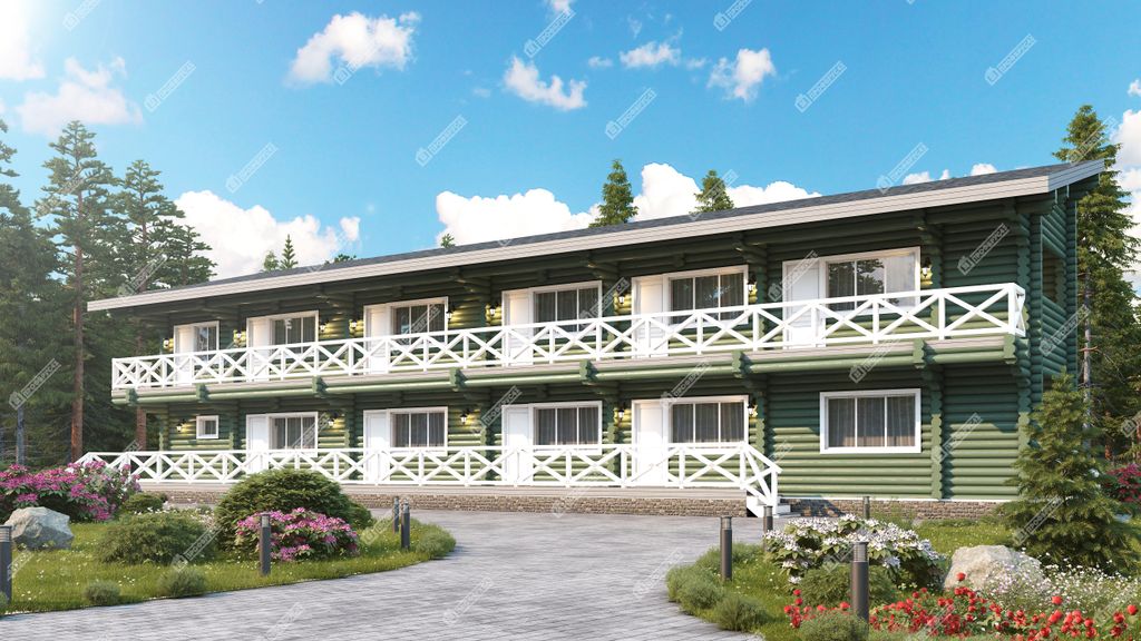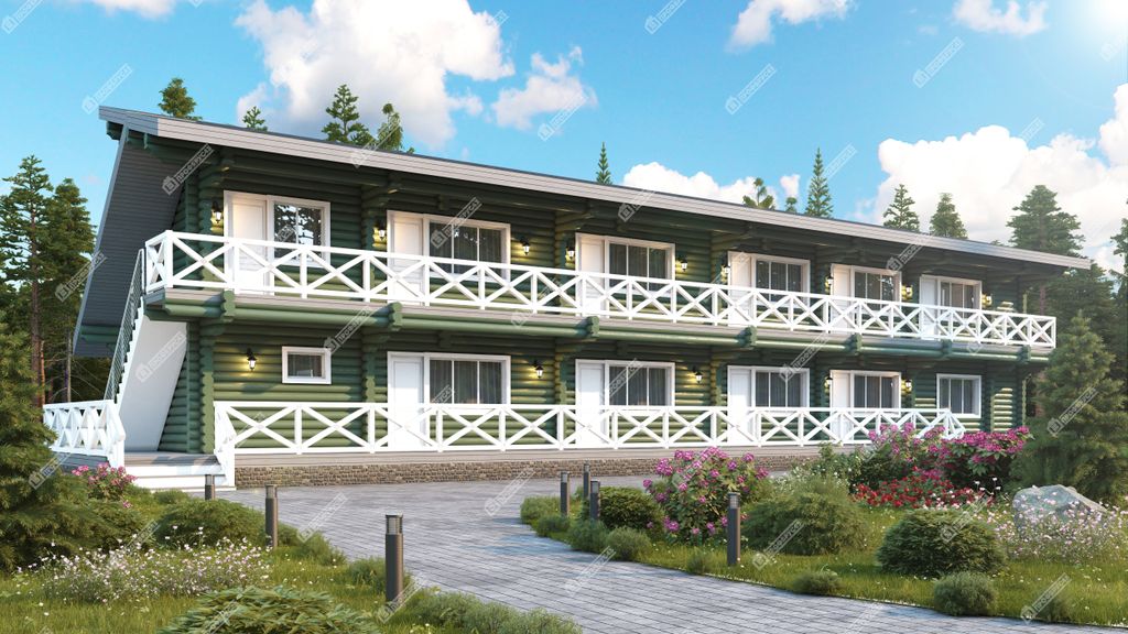 - На первом этаже гостиницы дополнительно спроектировано помещение под кафе, банный комплекс (парная, моечная, комната отдыха).